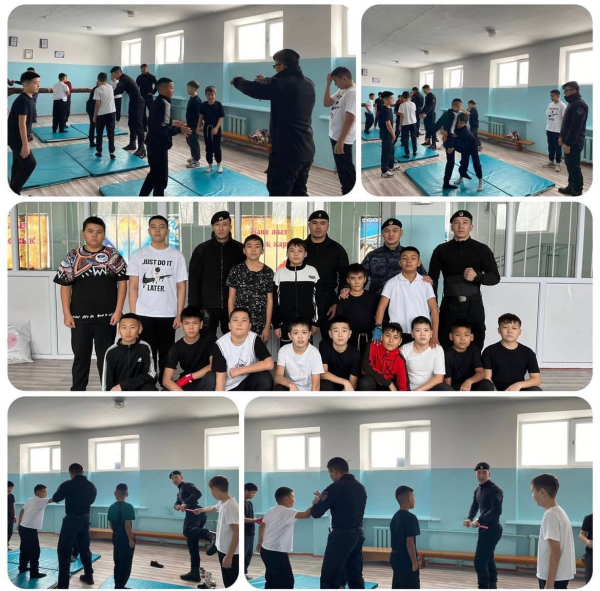 18 желтоқсан күні “Жедел әрекет етудің арнайы жасағы” қызметкерлері Аға инспектор ЖӘЕАЖ полиция капитаны Сламбеков Н, инспектор ЖӘЕАЖ Аға лейтенанты Нургазин А, инспектор ЖӘЕАЖ Аға лейтенанты Кайылханов Р, инспектор ЖӘЕАЖ лейтенанты Қуаныш З “Жас Сақшы” сынып оқушыларына “Өзін-өзі қорғау”жаттығу әдістерін көрсетті.