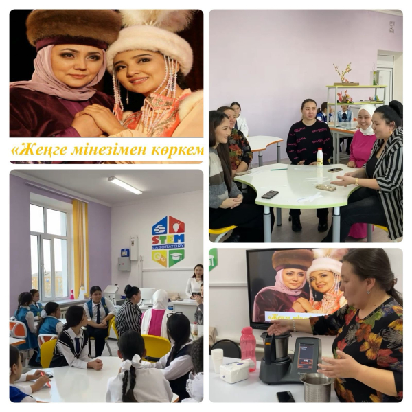 “Жеңге мінезімен көркем” атты жеңгелермен дөңгелек үстел өтті. Шараның мақсаты адамгершілік қасиеттерін, жеңге мен қайын сіңлінің арасындағы өзара сыйластық, бір - біріне деген сүйіспеншілікті нығайтып, ана мен бала, жеңге мен қыз арасындағы тәрбиені одан әрі дамыту, Отанын, тілін, қазақы салт - дәстүрді құрметтей білуге үйрету.