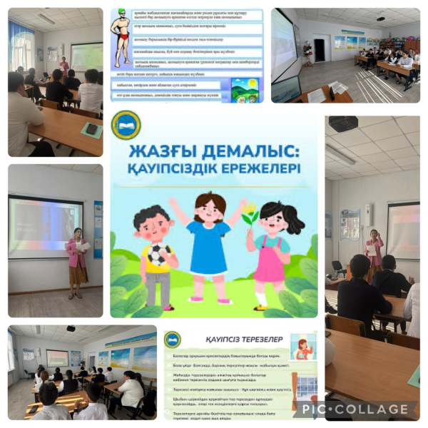 23 мамыр күні 9Б сыныбының сынып жетекшісі А.К.Манаева “Білімім-Отаныма” және “Қауіпсіз жаз” ережелері тақырыбында сынып сағатын өткізді. Мақсаты: балаларға білім ұясына қамқор болуға, білім алуға құштар болуға, жыл бойы алған білімінің нәтижесін қорытындылап, жаз айындағы қауіпсіздік ережелері туралы қатаң ескертулер айтылды.