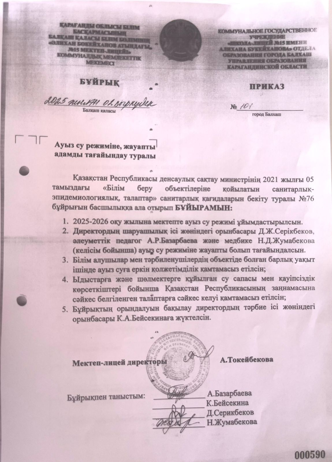 АУЫЗ СІ РЕЖИМІНЕ ЖАУАПТЫ АДАМДЫ ТАҒАЙЫНДАУ ТУРАЛЫ