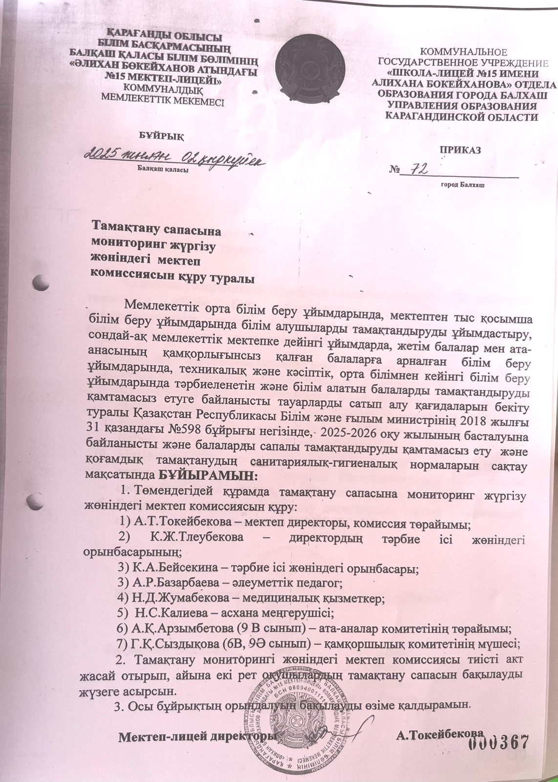 Коммунальное государственное учреждение “Школа - лицей №15 имени Алихана Букейханова” отдела образования города Балхаш управления Карагандинской области.