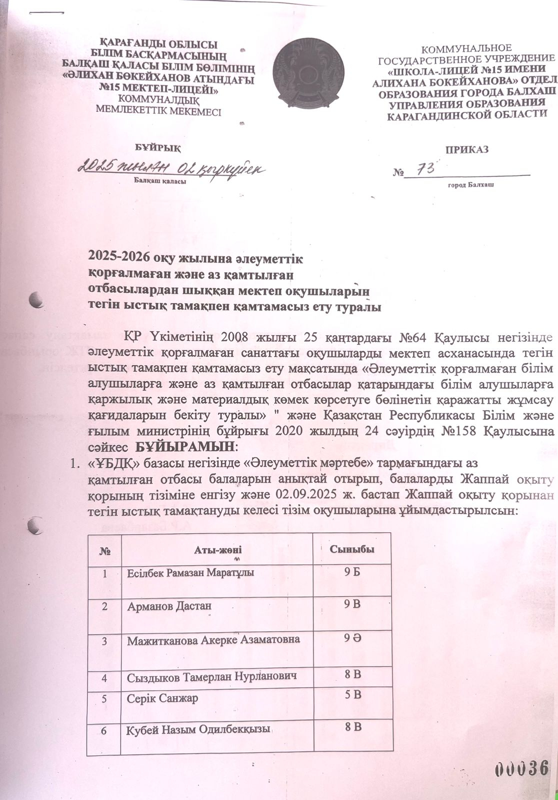 2025-2026 ОҚУ ЖЫЛЫНА ӘЛЕУМЕТТІК ҚОРҒАЛМАҒАН ЖӘНЕ АЗ ҚАМТЫЛҒАН ОТБАСЫЛАРДАН ШЫҚҚАН МЕКТЕП ОҚУШЫЛАРЫН ТЕГІН ЫСТЫҚ ТАМАҚПЕН ҚАМТАМАСЫЗ ЕТУ ТУРАЛЫ