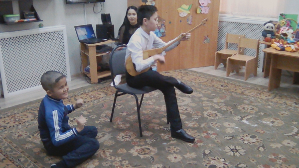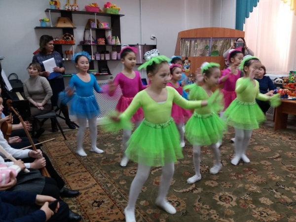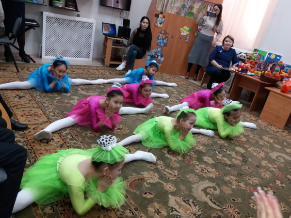 В программу входили и музыкальные, и танцевальные номера, игры. Дети с удовольствием слушали музыкальные произведения, песни в исполнении учащихся музыкального отделения. На эмоциональном подъёме прошли игры с педагогом хореографического отделения. А с каким восторгом дети приняли озорной, задорный танец «Конфетки», который исполнили учащиеся хореографического отделения. Художественное отделение провело мастер-класс, наглядно показав технику выполнения несложных манипуляций с материалом и крупой. Результатом этой работы стали куклы-крупяницы, которые с удовольствием были подарены от «Школы искусств» реабилитационному центру«Үлкен жүрек». Также педагогами-художниками была организована выставка изделий из войлока, из бисера и шерсти, что вызвало неподдельный интерес, как у детей, так и у педагогов.