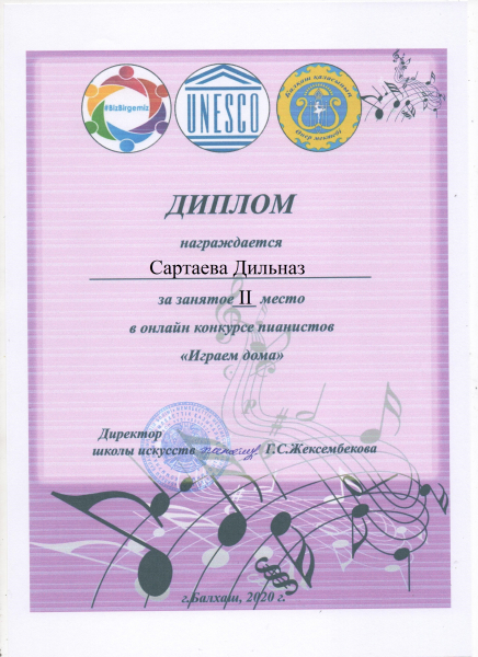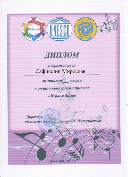 Пианисты провели конкурс под названием «Играем дома», в котором приняли участие 23 учащихся. С каким воодушевлением дети взялись за подготовку и проведение конкурса. По видеозаписям видно как горят глаза и сияют лица детей. Такое впечатление, что отдалённость от школы и от педагога ещё больше усилили желание играть, творить, общаться. Бесконечные звонки, вопросы от детей, родителей, их активность удивили даже педагогов. Жюри по достоинству оценили игру участников конкурса и удостоили призовыми местами 10 учащихся: