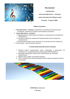 С 26 марта по 5 апреля КГКП «Школа искусств» клуб-ЮНЕСКО проводит онлайн-конкурс на музыкальном, художественном и хореографическом отделениях