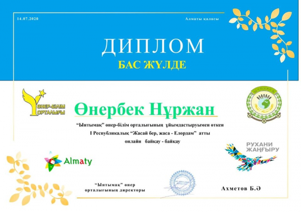 14 шілдеде Алматы қаласы, «Ынтымақ» өнер-білім орталығының ұйымдастыруымен І Республикалық «Жасай бер, жаса-Елордам!» онлайн конкурс болып өтті. Аталған конкурсқа Балқаш қаласы, Өнер мектебі-ЮНЕСКО клубы домбыра сыныбының оқушысы Нұржан Өнербек қатысып, қарсыластарынан озып шауып, Бас жүлдені иеленді. Құттықтаймыз!!!