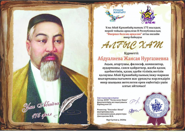 Ұлы Абай Құнанбайұлының 175 жылдық мерей тойына арналған II Республикалық «Өнерпаз болсаң-арқалан» атты онлайн өнер байқауы
