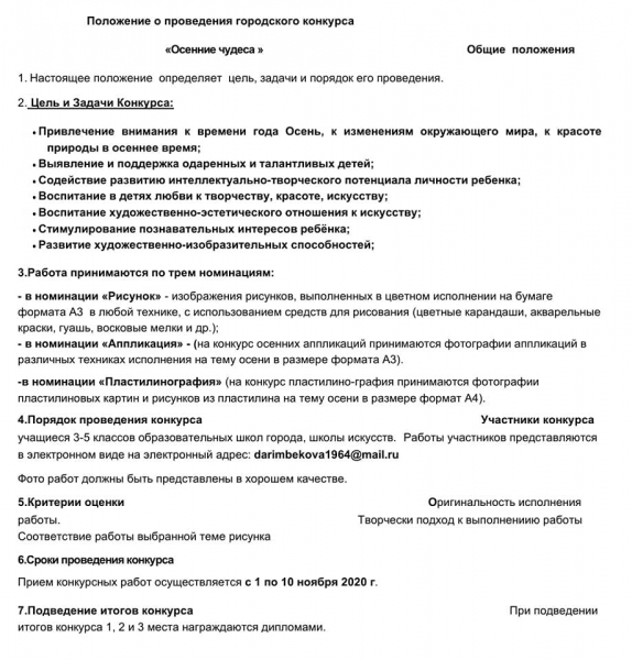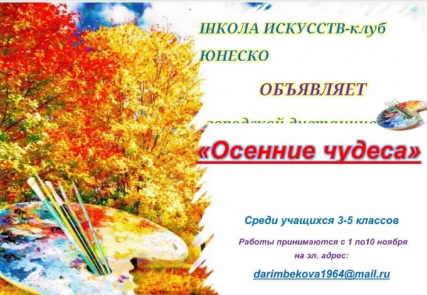 Школа искусств-Клуб ЮНЕСКО приглашает принять участие в городском конкурсе "Осенние чудеса"