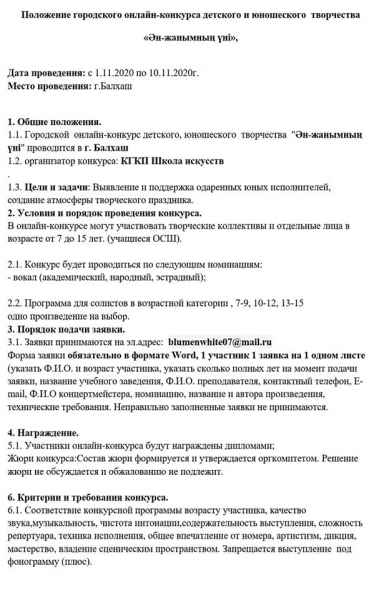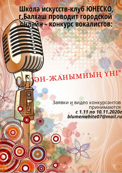 Школа искусств-Клуб ЮНЕСКО приглашает принять участие в городском конкурсе вокалистов "Ән жанымның үні"