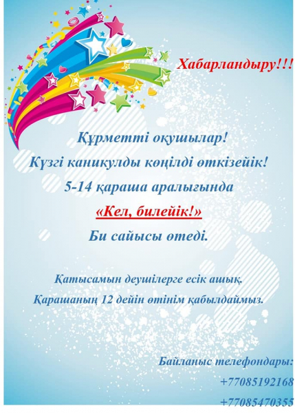 Школьный конкурс 《Кел, билейік!》