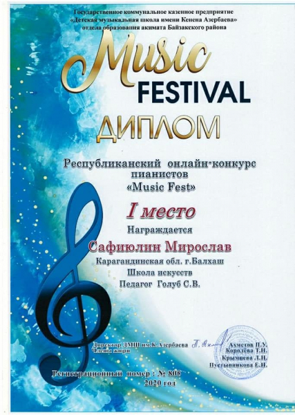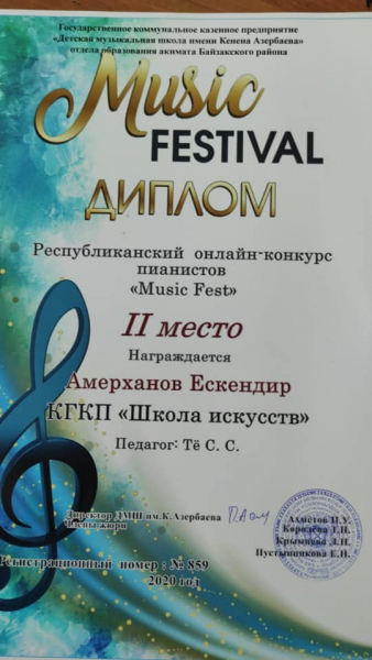 В ноябре месяце, текущего года, в детской музыкальной школе имени К. Азербаева, Жамбылской области прошел республиканский онлайн-конкурс пианистов «Music – Fest».