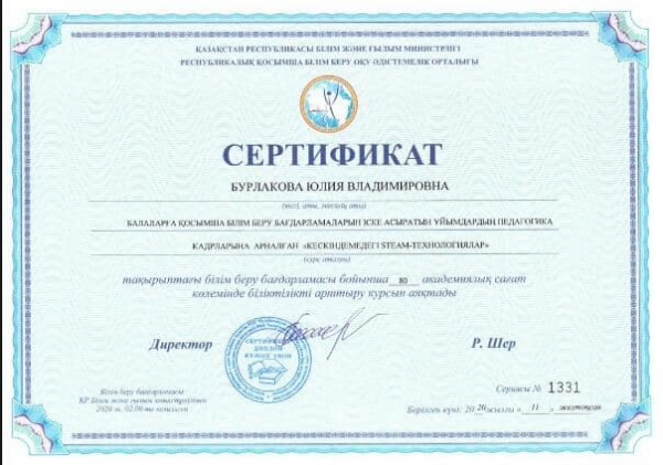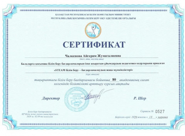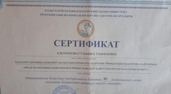 1. «Развитие детей с особыми образовательными потребностями в дополнительном образовании» с 19 по 30 октября. Педагог Елеубекова Г.У.