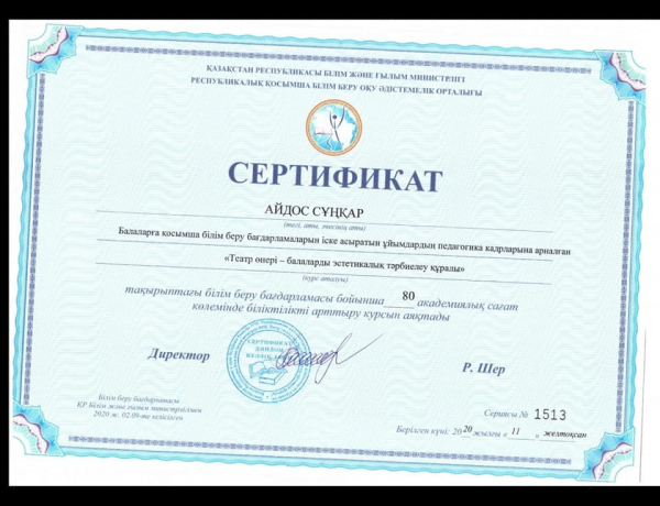 8. «Театральное искусство как средство эстетического воспитания детей» с 30 ноября по 11 декабря. Педагог Айдос С.