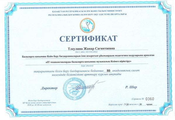 3. «Интеграция IТ технологий в музыкальное дополнительное образование детей» с 19 по 30 октября. Педагог Тлеулина Ж.С.
