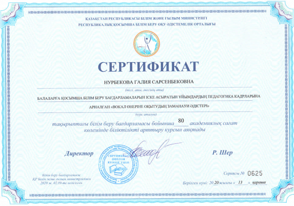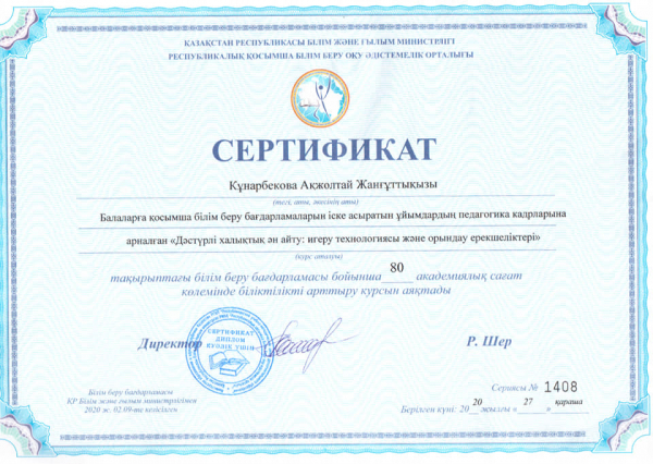 7. «Традиционное народное пение: технологии освоения и особенности исполнения» с 16 ноября по 2 декабря. Педагог Кунарбекова А.Ж.