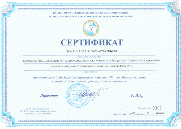 5. «Современные профессиональные компетенции педагога_ хореографа» с 2 по 13 ноября. Педагог Тогайбаева А.А.