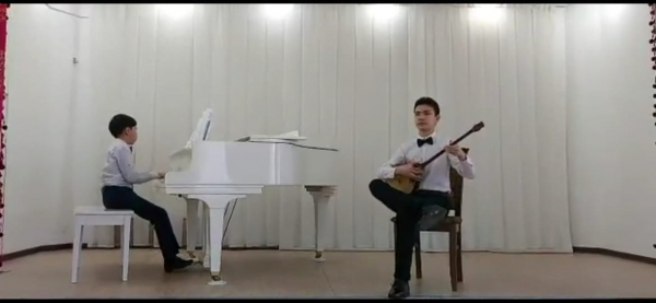Орындайтындар Балқаш қ. Балалар өнер мектебінің оқушылары Ибраимов Алихан (домбыра), Шайхов Айдар (фортепиано)