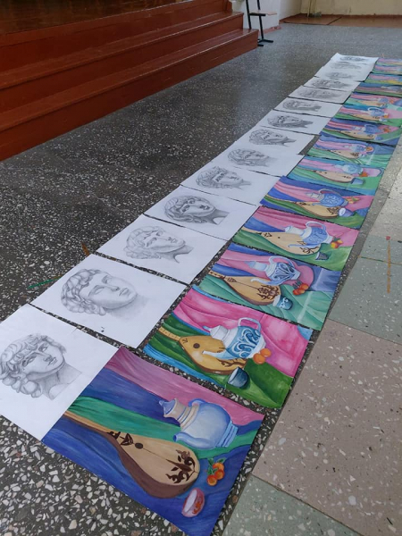 17 мамыр күні Балалар өнер мектебінде мемлекеттік қаралымға мектеп бітіруші түлектердің кескіндеме, сурет, сәндік қолданбалы өнер, мүсін пәндері бойынша жұмыстары қойылды.
