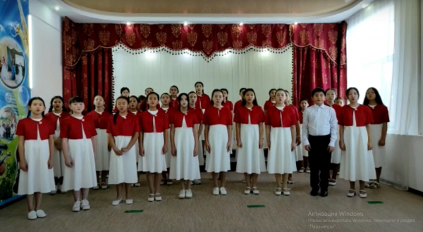 Жоғарғы сынып оқушылары хорының орындауында «Туған жер туралы толғау» әнін қабыл алыңыздар