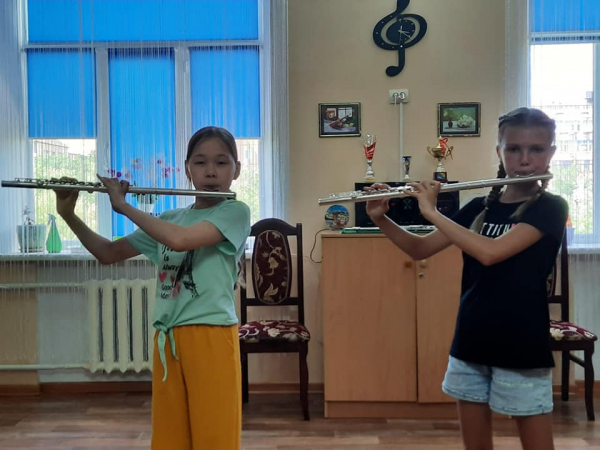 Абеу Аружан и Макушинская Милада закончили 1-й класс по блок флейте. И с нетерпением ждали хоть на мгновение прикоснуться к большой флейте. И в летние дни этот момент настал, и родители уже приобрели инструменты, и девочки готовы приходить на занятия ежедневно... В семье, где родители понимают, что музыка - это не только развлечение, а средство воспитания чувства красоты, и юные души будут наполнены гармонией, мир таких детей будет самым лучшим и прекрасным...