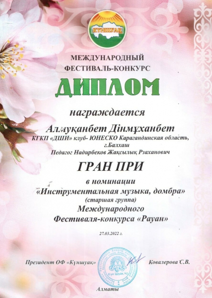 1. Алмуқанбет Дінмұқанбет - ГРАН ПРИ (пед.Надирбеков Ж.Р.)