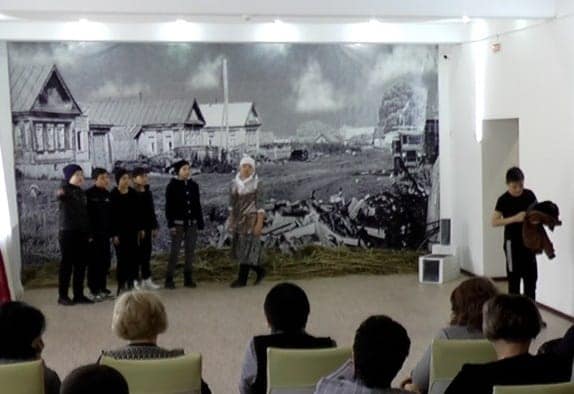 Театр бөлімінің педагогі Жангазиев Ж.Ж. «Шеберлікке үйрету жаттығулары» сабағында актерлік шеберлік, сахна тілі дәрістерінде үйретілетін жаттығуларды оқушылармен көрсетті. Сабақта балалар шағын этюдтер, пантомима көрсетіп, поэзия оқыды.