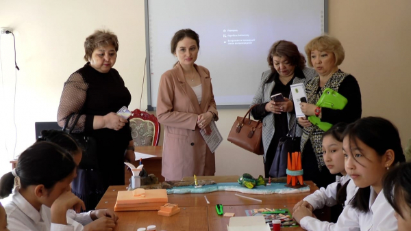 «Оқушылардың әлеуметтенуіне оркестр пәнінің берер септігі» ашық сабағында, оркестр пәнінің педагогі Нурбекова А.Б. жоғары сынып оқушылары оркестрімен жұмыс жасау әдістерін айтып, келген қонақтарға оқушылардың оркестр сабағында шығармашылығы, ізденімпаздығы, бәсекеге қабілеттілігі артытынын көрсетті.