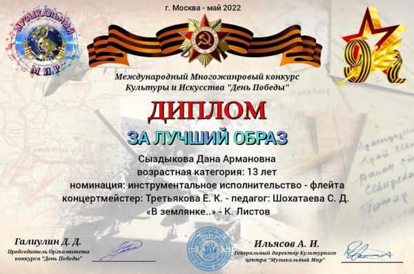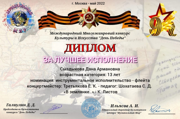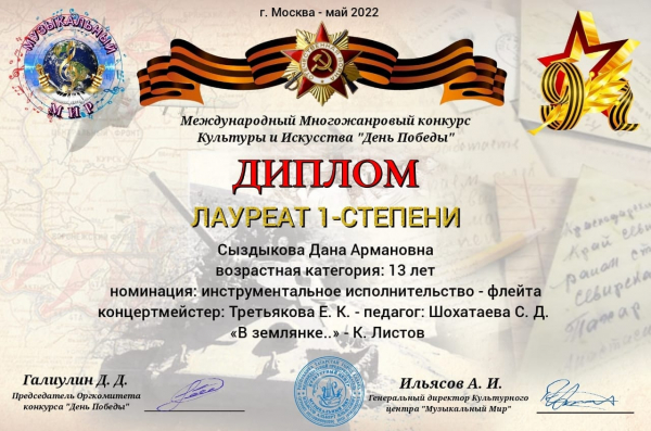 Результаты международного конкурса Культуры и Искусства, посвященного 9 маю "День Победы" при поддержки Культурного центра "Музыкальный Мир" 2022г.