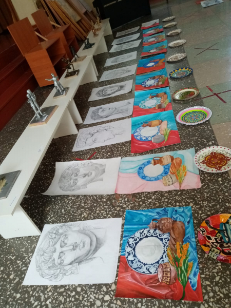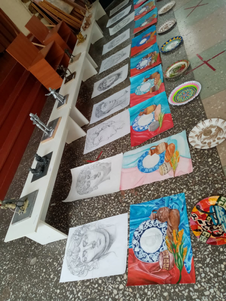 Бүгін көркемөнер бөлімінің бітіруші түлектері сурет, кескендеме, мүсіндеме, сәндік қолданбалы өнер, компьютерлік графика пәндері бойынша жұмыстарының мемлекеттік қаралымы болып өтті.