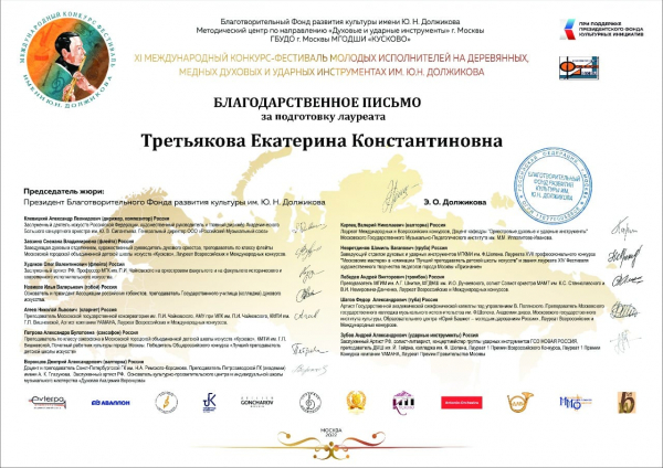 Прошёл 2-й тур 11-го Международного конкурса-фестиваля молодых исполнителей на деревянных, медных духовых и ударных инструментах имени Ю. Н. Должикова, который призван всемерно способствовать развитию творчества юных исполнителей, совершенствованию их профессионального мастерства, пропаганде и широкой популяризации музыки для духовых и ударных инструментов. Выступление учащихся класса флейты, прошедшие на 2-й тур, высокопрофессиональное жюри оценили по достоинству.
