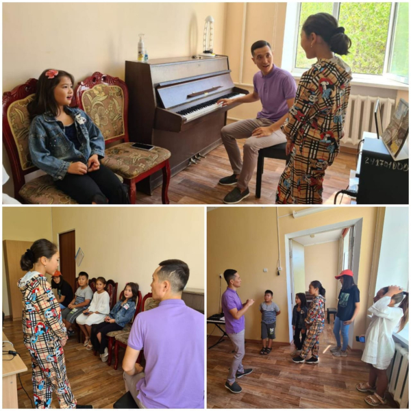 Жазғы мектебінде вокал сыныбының педагогі Ұзақбай Ж.Т оқушыларымен жұмыс жасауда