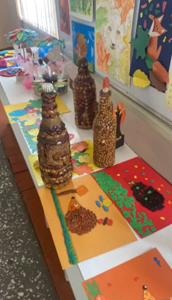 Мектебімізде көркемөнер бөлімі оқушылары «Звонкие краски осени» тақырыбындағы көрмеге жұмыстарын қойды. Көрмеде акварельмен, гуашьпен жасалған күзгі пейзаждарды көруге болады. Флористика техникасында орман жануарлары - кірпілер, тиіндер жасалады. Балалар табиғи материалдан, тұқымнан, пластилиннен, түрлі-түсті қағаздан және картоннан қолөнер жасап, көпшілікке ұсынды. Күздің керемет түстері алуан түрлілігімен көрмеге келіп көрушілерге көтеріңкі көңіл күй сыйлады.