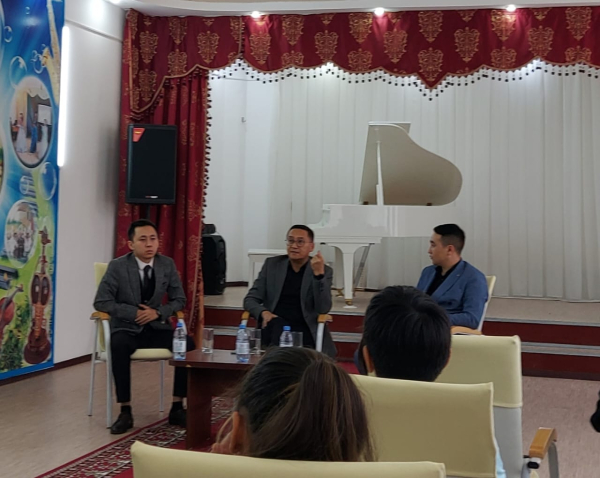 23 октября во время очередных гастролей в наш город, в школу был приглашен директор театра, деятель культуры РК, лауреат премии Союза Молодежи Еспаев Дунай Амандыкұлы. Учащиеся театрального отделения задавали вопросы о театральной жизни, театральных постановках. Журналисты и учителя, пришедшие на встречу, поинтересовались о творчестве, деятельности Дуная Амандықұы. Директор школы Г.С.Жексембекова вручила благодарственное письмо Д.А.Еспаеву, пожелала театральному коллективу театра творческих успехов и о намерении сотрудничать в будущем.