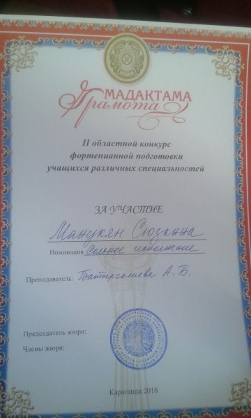 В старшей возрастной группе учащаяся Манукян Сюзанна получила благодарственную грамоту за участие.