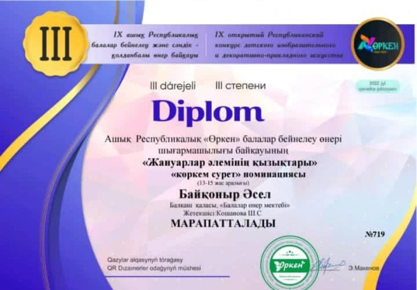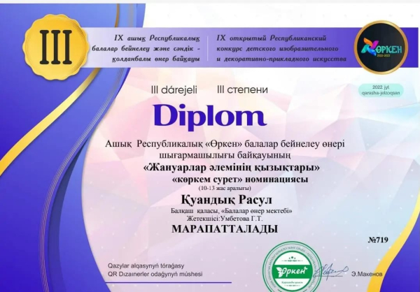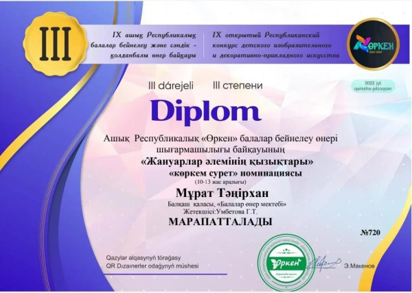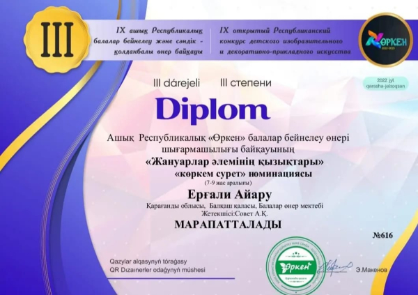 lX Ашық Республикалық «Өркен» балалар бейнелеу және сәндік- қолданбалы өнер байқауына мектебіміздің көркемөнер бөлімі оқушылары көркем сурет және сәндік қолданбалы өнер номинациясы бойынша қатысты.