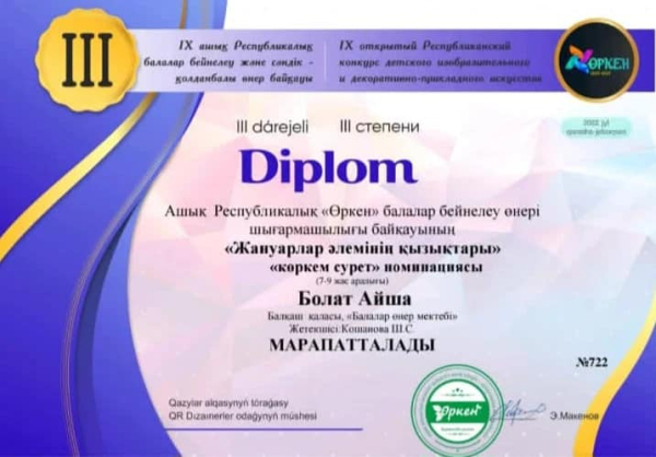 lX Республиканском конкурсе детского изобразительного и декоративно- прикладного искусства «Өркен».