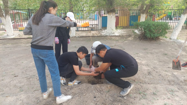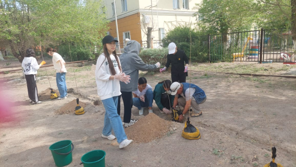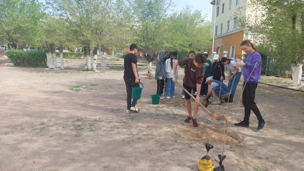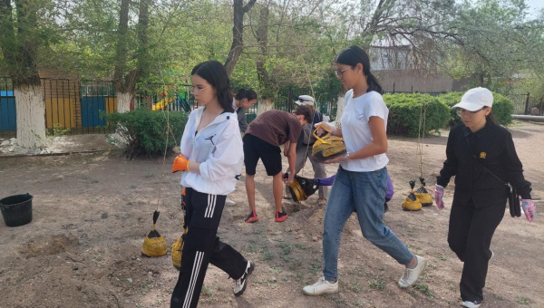 Мектеп бітіруші түлектеріміз «Жасыл мекен» челленджіне қатысып, көшеттер отырғызды.