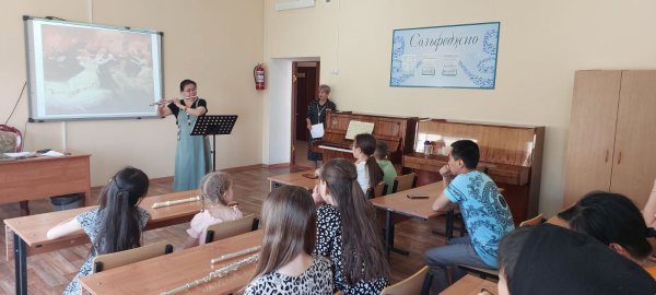 02.06.2023 г. в Детской школе искусств прошло мероприятие филармонии по предмету «Мировая музыкальная литература» по теме П.И.Чайковский «Детский альбом». Педагог рассказала о биографии великого композитора, история создания детского альбома, который был посвящен племяннику композитора. В исполнении педагогов: Захаровой Е.В., Шохатаевой С.Д., учащихся блок флейты и флейты. Отдельные произведения из детского альбома были прослушаны в записи с демонстрацией картин русских художников. Тематическая филармония прошла в камерной обстановке. В общем подготовка мероприятия была на хорошем методическом уровне, дети и педагоги с большим удовольствием прослушали и отблагодарили бурными аплодисментами.