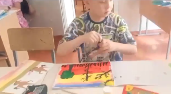 Сурет сабағында балалар "Силуэтная живопись" деген сөздің мағнасына көз жеткізді