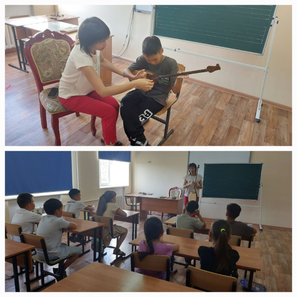 Балалар өнер мектебі ЮНЕСКО клубында ұйымдастырылған "Жаз 2023" шығармашылық алаңында домбыра, фортепиано, театр сыныптары бойынша балалар аспаптың шығу тарихы, орындалатын шығармалардың көркемдігімен танысып, аспап құрылымымен, ноталық сауаттылық пен жұмыс жасады.