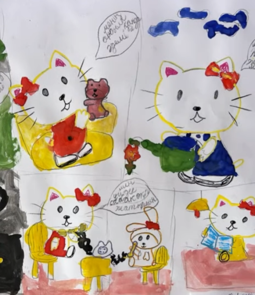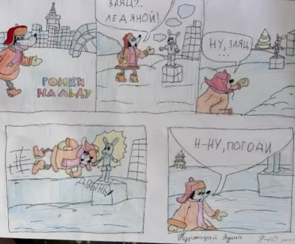 Байқауға 7-8, 9-10 жас даярлық тобы оқушылары қатысты. Балалар өздері сүйіп көретін мультфилімдерінің мазмұнын ашып, кейіпкерлерді анық бейнелеп,сюжеттерге қиялдарын қосып бірнеше кадрда ойларын жеткізе білді. Бұл комикс жанры жаңашыл форматта сурет салуы балалардың қызығушылықтарын арттыра түсті.