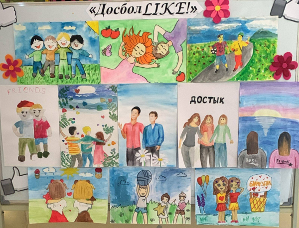 Дружба - это чудо! Которую мы проносим в течении всей жизни."Досбол LIKE" - біздің мектеп көрмесі осылай аталды. Ол 23 Мамыр өтті Балалар өнер мектебінде , көркем сурет бөлімінде. Көрмеде сурет салу, мүсін пәндері бойынша балалардың жұмыстары ұсынылды.
