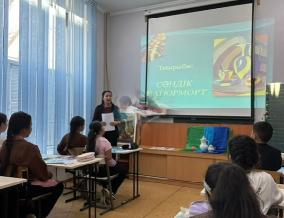 14.11. 2025 күні көркемөнер бөлімінде Сурет пәнінен "Сәндік натюрморт және оны бейнелеу" тақырыбында 1- ші сыныптармен ашық сабақ өткізілді. Педагог Тілеубек Айдана Маргулановна. Натюрморт жанрында жұмыс орындауды дұрыс ұйымдастыру тәжірибесімен бөлісті. Натюрморт бейнелеуде қойылған заттарды қағаз бетінде орнын табу, орналастыру, тұрғызу, жарық пен көлеңкені бейнелеп, түстерді үйлестіре отырып бояу және безендіру тәсілдерін ұтымды көрсете білді. Барлық оқушылар сабаққа белсенді қатысты.
