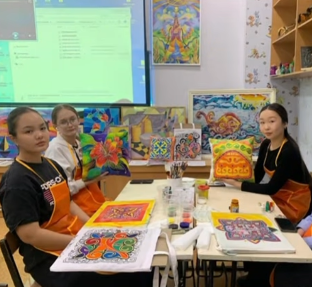 В ходе занятия учащиеся познакомились с историей и особенностями техники холодного батика, узнали о специфике работы с тканью, резервирующим составом и красками по шелку. Преподаватель последовательно и доступно представила материалы урока, продемонстрировала основные приемы росписи и подробно объяснила особенности подготовки ткани и инструмента.