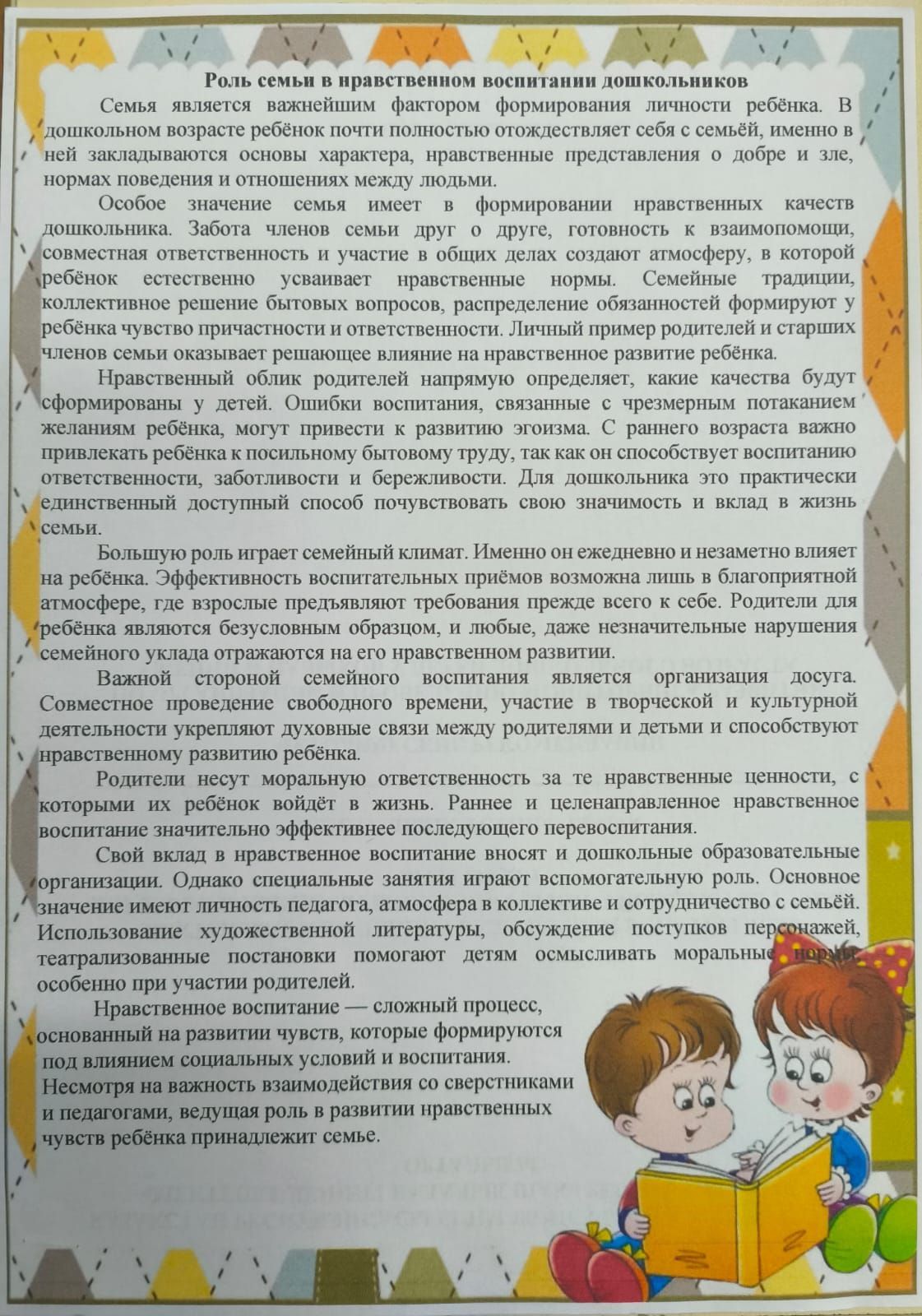 Роль семьи в нравственном воспитании дошкольников