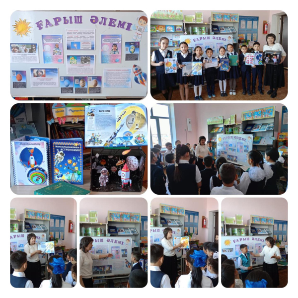 11.04.25 жылы мектеп кітапханашылары оқушыларды білімге, ғылымға ұмтылдыру, ғарыш саласы туралы білімдерін молайту, қазақтың ғарышкерлерінің өмірбаяндарымен таныстыру мақсатында 3- сынып оқушыларының қатысуымен «Ғарыш әлеміне саяхат» атты танымдық сағат