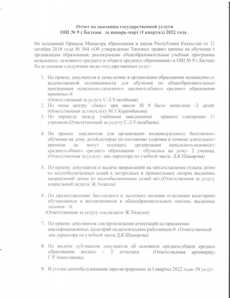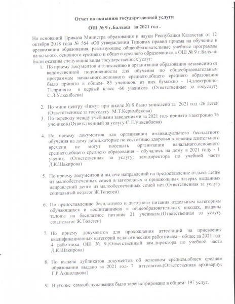 Отчет по оказанию государственной услуги за 2021-2022 год