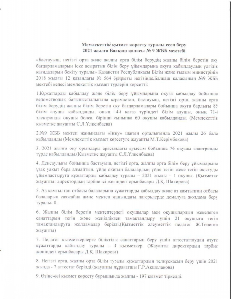 Мемлекеттік қызмет көрсету туралы есеп 2021-2022