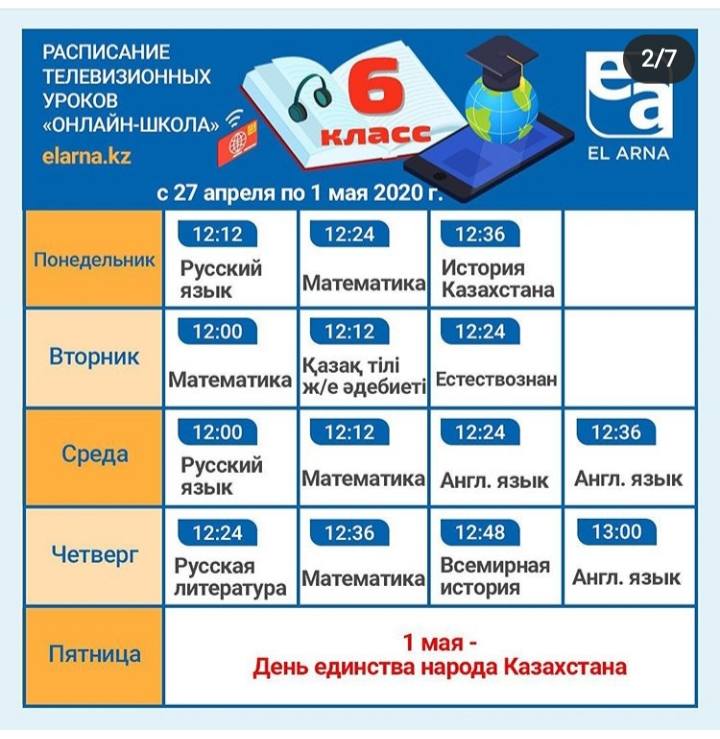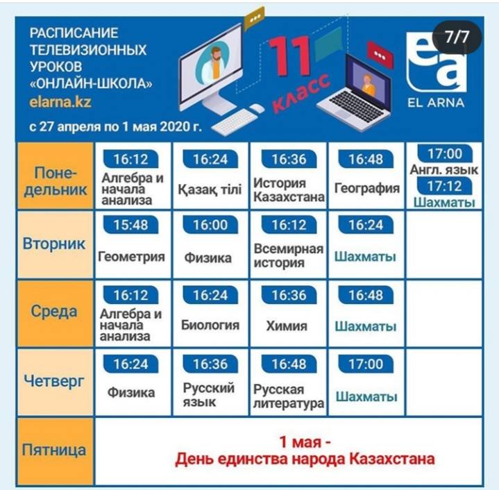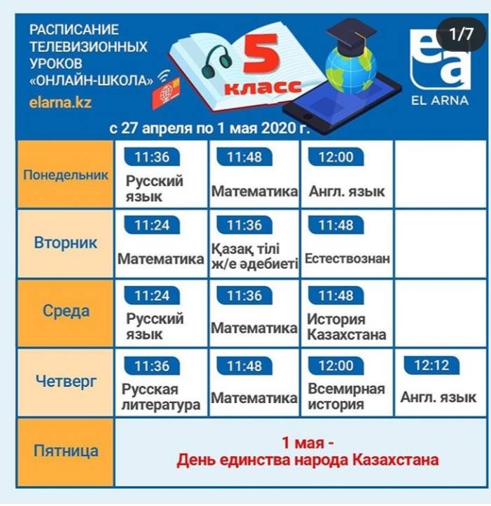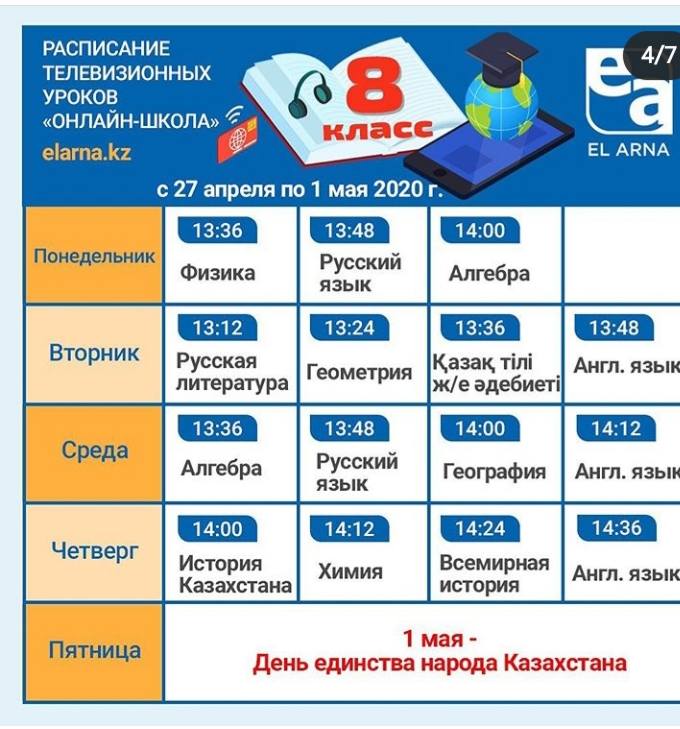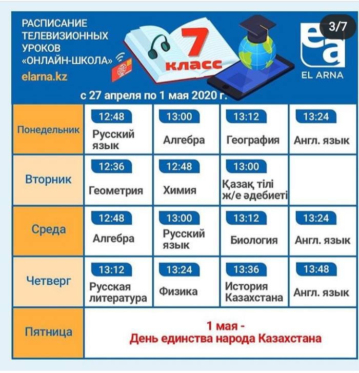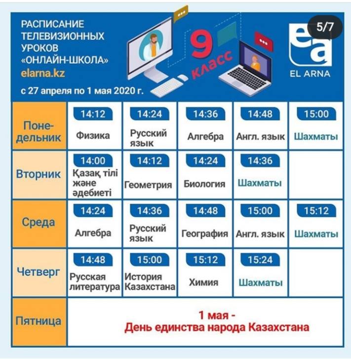 Расписание ТВ уроков с 27 апреля по 1 мая 2020 года