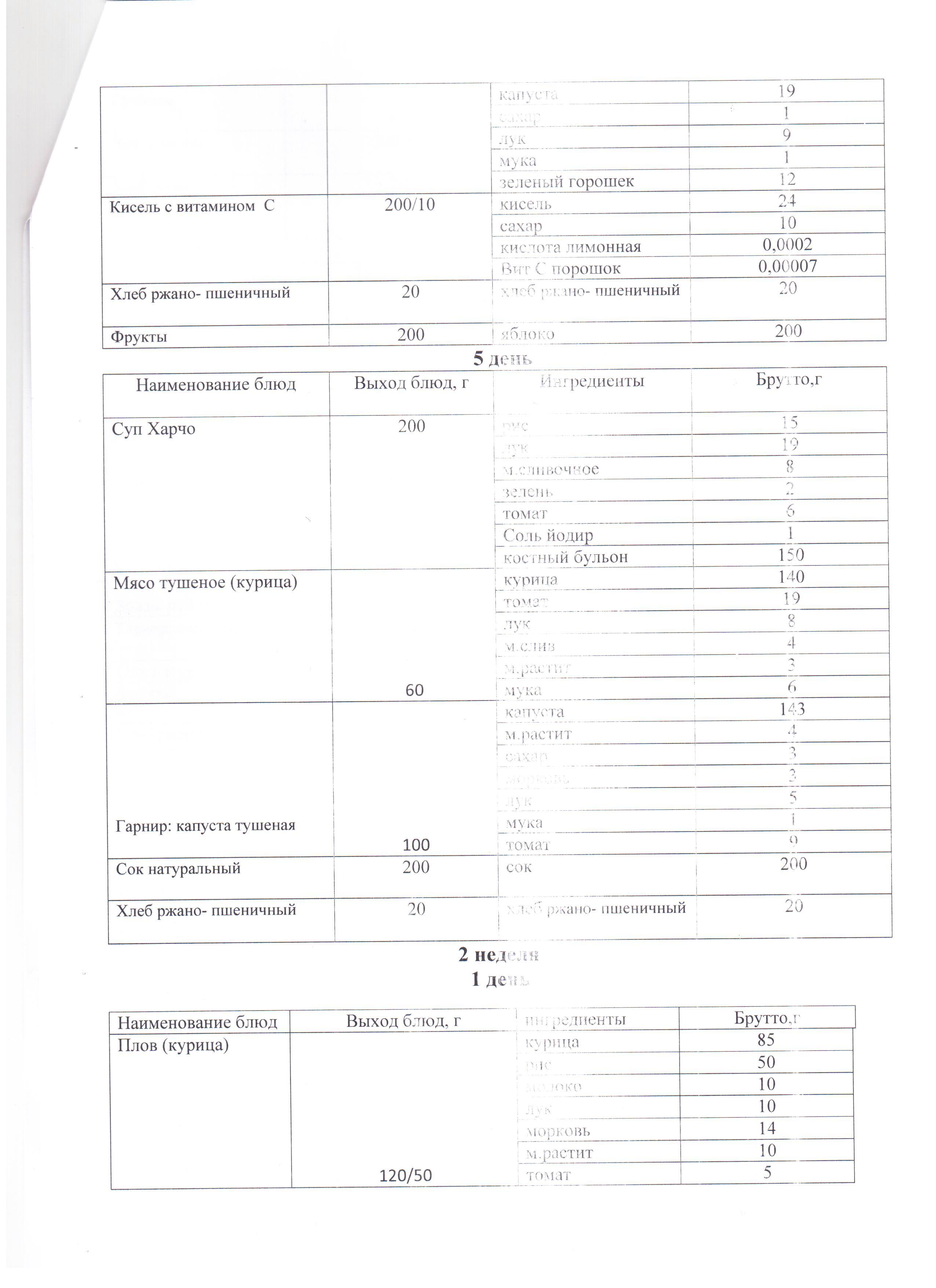 План работы школьной столовой